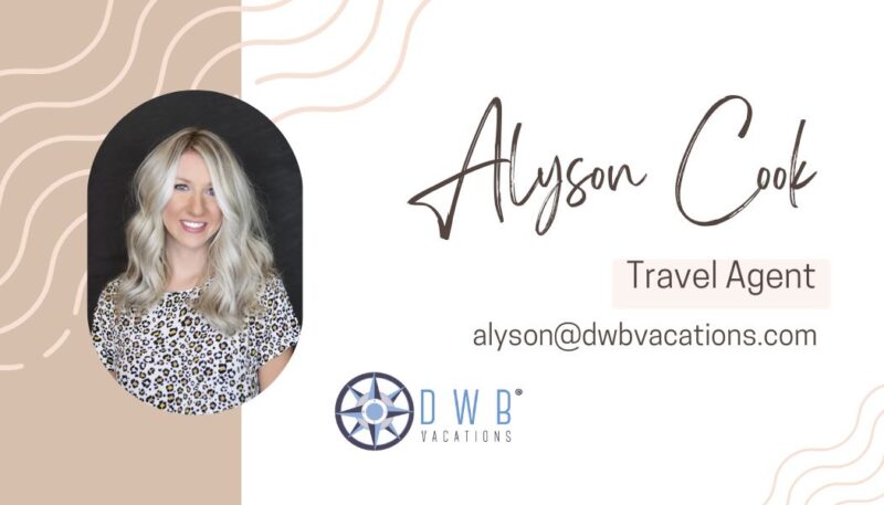 Facebook/ Instagram: Travel with Alyson – DWB Vacations; @travel_with_alyson